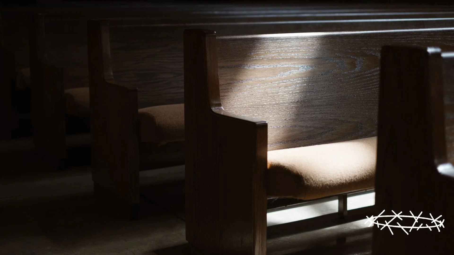 image description: sunlight streams in on battered church pews